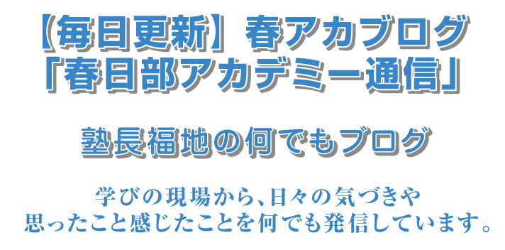 春日部の塾で一番ブログを更新している塾長福地による「春日部アカデミー通信」をぜひお読みください。 |