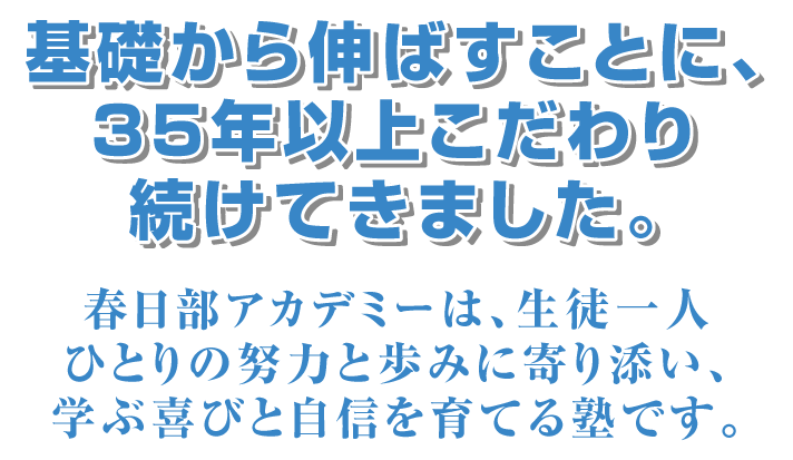春日部の小学生・中学生・高校生の英語力と学力を伸ばす塾、春日部アカデミーのホームページをご覧いただき、ありがとうございます。